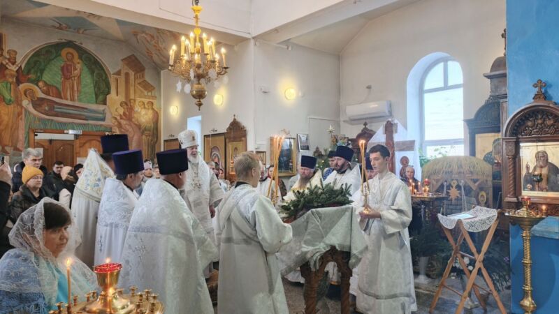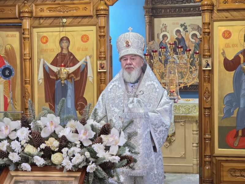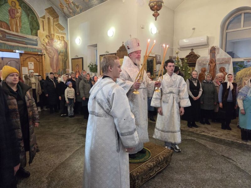 По завершении службы владыка Владимир произнёс проповедь и поздравил всех с праздником Рождества Христова.