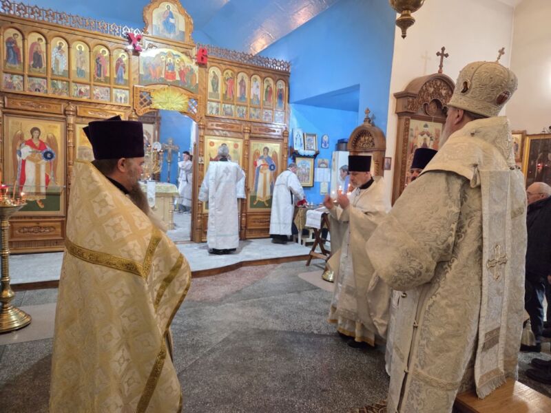 Его Преосвященству сослужили: настоятель храма протоиерей Александр Соловьёв; настоятель храма в честь Покрова Пресвятой Богородицы р.п. Чаны протоиерей Николай Тукуреев; настоятель храма в честь святого праведного Иоанна Кронштадтского г. Татарска иерей Роман Клевцов; настоятель храма в честь святого великомученика целителя Пантелеймона протоиерей Андрей Вирясов; настоятель храма в честь святого Архангела Михаила с. Усть-Тарка протоиерей Александр Обжигайлов; настоятель храма в честь Нерукотворного образа Господа Бога и Спаса нашего Иисуса Христа иерей Валерий Котов; диакон Георгий Бекарев.