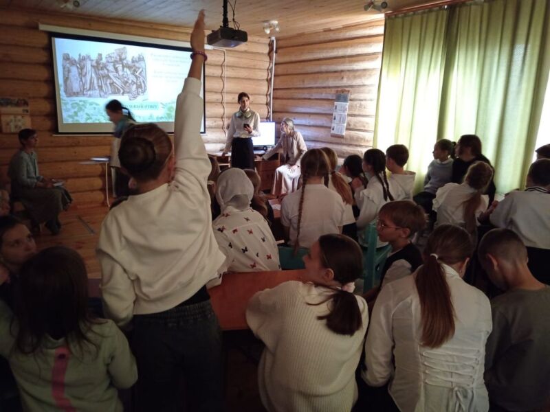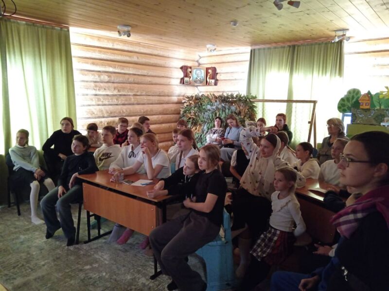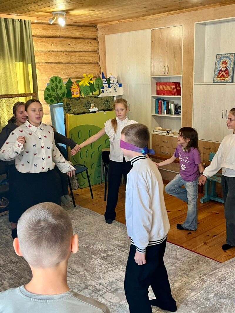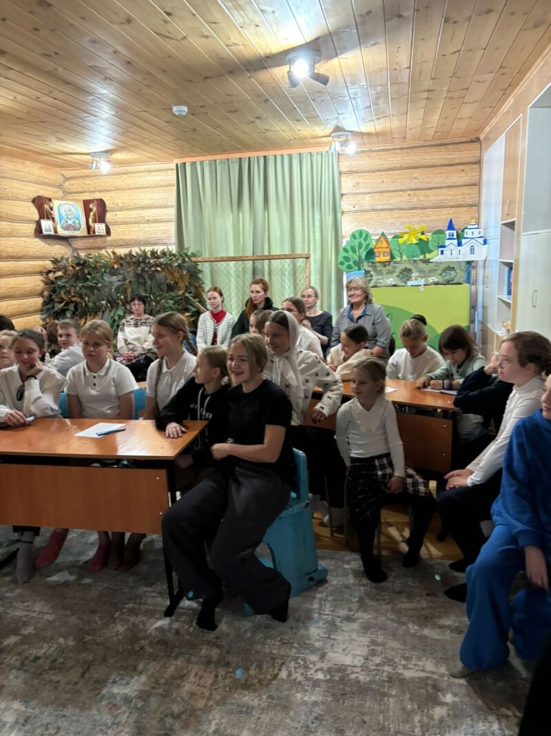 Далее детей обеих Воскресных школ ждала интеллектуальная игра. Для ее проведения все участники были разделены на три команды. В «Своей игре» были разные категории. Одна группа вопросов была посвящена церковно-славянскому языку, другая — житиям святых, третья — церковным праздникам, а в четвёртой категории были собраны вопросы на разные темы. Воспитанники Воскресных школ с удовольствием демонстрировали свои знания, отвечая на различные вопросы. Хотя компетентное жюри и определило команду-победительницу, но это, конечно же, было не так важно — ведь в соседнем классе всех уже ждали замечательные тортики!